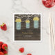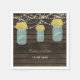 Barnwood rústica, colgando luces de cuerda con flores amarillas en una servilleta de boda de papel personalizada boda de un frasco de albañil. También están disponibles productos de correspondencia