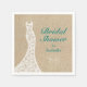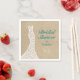 Tipo turquesa, dos adorables estrellas de mar y un acento de vestido de novia de encaje romántico adornan esta servilleta para desayuno nupcial sobre un fondo de arena de playa ilustrada. Coordina perfectamente con la Invitación para Desayuno Nupcial en la Playa Hermosa en turquesa.