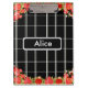 Este tablero de clip personalizado floral hermoso es un tamaño estándar A4. Este tablero del negro ofrece uno de mis dibujos de la mano de rosas en un fondo negro.