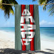 ¡PLAYA POR FAVOR! Este diseño fresco y único presenta una tipografía moderna que se asemeja a la forma de una tabla de surf sobre un fondo rayado. Utilice la herramienta de diseño para cambiar los colores de la banda.