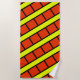 Esta toalla de playa tiene un diseño rojo y amarillo.