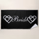 La toalla de playa de Bride Black Hearts Beach es una excelente manera para que cada novia o novia pueda celebrar a su boda. La gran toalla de playa tiene un fondo negro con los corazones blancos enganchados en la parte delantera y final de "Bride", que también tiene un diseño en bonito blanco cursivo.
