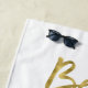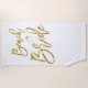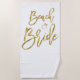 Toalla de playa con texto falso dorado Beach Bride (parecido a una imitación) y anillo impreso en fondo blanco