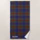 La elegante toalla de playa está realizada en el clásico y colorido clan escocés MacBeth con lona tartan. Personalice el texto blanco, en la parte inferior, para que se ajuste a sus necesidades.