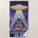 No preguntaron. No avisaron. Simplemente estuvieron de acuerdo. EYE CONCUR es más que una frase —es un mensaje de más allá. Un solitario platillo se cierne sobre una pirámide negra, lanzando un rayo de conciencia penetrante. En el centro, los ojos mirados miran en silencio, brillando con una verdad que tal vez no estemos listos para enfrentar. Las estrellas parpadean, la ciudad contiene el aliento, y los secuestradores observan con antiguo juicio. Cuando estás en la playa, observando a las especies locales en juego, retozando en las aguas, uno piensa: ¿Estás de acuerdo... o te rindes?