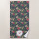Hermoso patrón floral de Hibiscus sobre fondo oscuro. Toalla de playa sofisticada y femenina con monograma en forma redondeada blanca. Puede cambiar fácilmente el texto (fuente, color, tamaño y posición) haciendo clic en el botón personalizar. Cadena de llaves, almohada, equipaje, etiqueta de equipaje y más...