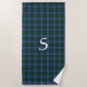 Toalla de playa de diseño en el clásico trenzado escocés azul y verde Sutherland. Personalice el gran monograma blanco de una letra, en el medio, para satisfacer sus necesidades.