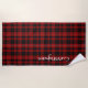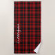 Toalla de playa de diseño, de estilo clásico escocés negro y rojo, con el estampado de lona tartán de Cunningham. Personalice el texto blanco grande para que se ajuste a sus necesidades.