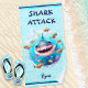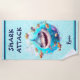 Toalla de playa con el tiburón feliz para los niños. Personalice el texto fácilmente y no olvide visitar la tienda para ver los elementos que coincidan. :: Kate Eden Art