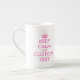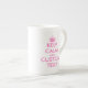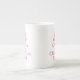 El rosa guarda calma y su taza de la especialidad de la porcelana de hueso del texto para el té o el café.