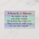 Una tarjeta de contacto de proverbios 31 Mujer madre, genial para compartir con otras madres en la escuela, iglesia, trabajo o grupos de juego. Sus hijos se levantan y la llaman bendecida. Su esposo también la elogia: "Muchas mujeres hacen cosas nobles, pero tú las excel a todas".