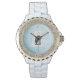 Glaciares y hielo rodean a Annie el pingüino paisley emperador mientras se acaricia con su padre, Davin, para mantenerse caliente en la fría nieve y hielo antártico. Esta dulce y fría escena es una gran manera de traer algunos adorables pingüinos a tu vida. Este reloj está disponible en una variedad de tamaños, colores y estilos, incluyendo tamaños para niños y adultos.