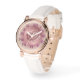 Este hermoso reloj de rosa dorado y blanco romano numérico está diseñado con un gradiente rosa y una flor. Añade esta belleza a tu colección de joyas o compra para un ser querido. Este reloj hace un gran regalo de cumpleaños o graduación.