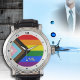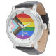 Watch: Modern Progress Rainbow, reloj de moda, con "nombre monogramado". La bandera arcoiris y la variación "Progreso" agrega un chevron a lo largo del puente que presenta rayas negras, marrones, azul claro, rosas y blancas para llevar a esas comunidades (personas marginadas de color, personas trans, y quienes viven con VIH/SIDA y los que se han perdido) al frente; "la flecha señala a la derecha para mostrar el movimiento hacia adelante, mientras que estar a lo largo del borde izquierdo muestra que aún hay que se debe avanzar.