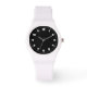 Black and White Sports Watch con números negros en la cara blanca. Este reloj es personalizable. Añade tu propia foto o obra de arte. Borrar números para un estilo minimalista.