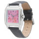 Un reloj rosa rosado bonito con una pintura acuarela que muestra una flor abstracta. El reloj se puede personalizar con el nombre del propietario para que sea realmente especial.