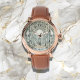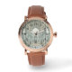 Reloj Heritage Masjid An-Nabawi para hombres - Rosa Dorado y Cuero | Hajj | Umrah | Regalo de Eid | Reloj islámico personalizado.