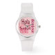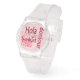 Say Hello en cinco idiomas con un diseño rosa genial. Este reloj es perfecto para un estilo deportivo y elegante.