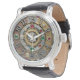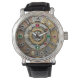 Vintage industrial, Steampunk Watch estilo con grandes cantidades fácilmente visibles. Cara de reloj original con oro, diamantes, esmeraldas, piedras de gema de rubí y círculo de signos astrológico / zodiaco. (el fondo del reloj está impreso / no contiene gemas reales).