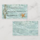 Información de la página web de bodas románticos inserte o adjunte una tarjeta con dos caballitos de mar de menta con forro metálico de oro sobre una superficie de agua con una estrella de mar. Hermoso para un destino o un boda de temática náutica.