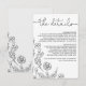 Esta tarjeta de inserción de detalles del boda de elegancia delicada es perfecta para un boda minimalista. El diseño floral presenta un diseño sencillo y elegante de delicadas flores silvestres blancas y negras, emparejadas con una fuente caligráfica romántica.