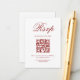 Añada un toque de elegancia festiva a su día especial con nuestra tarjeta RSVP de Boda Elegante de Navidades Blancos y Rojos. Con un impresionante diseño rojo y blanco, estas tarjetas RSVP complementan perfectamente el tema boda de sus navidades. Coordinarlos con nuestras invitaciones a la boda de nuestros navidades para crear una apariencia cohesiva y hermosa para su gran día. Personalice con facilidad para asegurarse de que todos sus huéspedes respondan con estilo.