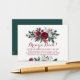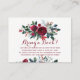 Elegante y florido burdeos de la marina floral floral moderna trae una tarjeta de inserción de libros con ramos de borgoñas rojas y peonías blancas con ramas de abeto verde de invierno, bayas rojas y follaje. Perfecto para el invierno / Navidades con temática floral ducha de bebé.