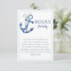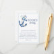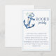 Invite a los huéspedes a ayudar a construir la primera biblioteca del bebé con esta encantadora tarjeta náutica "Books for Baby". Con un suave ancla azul acuática y vegetación costera, esta tarjeta de alojamiento es ideal para disfrutar de una ducha infantil con temática playera, náutica o náutica. Consúltelo en sus invitaciones para solicitar suavemente un libro en lugar de una tarjeta, creando una significativa colección de keepsake para la nueva llegada.