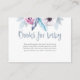 Desliza estas tarjetas pequeñas en las invitaciones de tu ducha de bebé cuando solicitas libros en lugar de tarjetas. Con un diseño a juego con flores y plumas de color púrpura azul y un poema dulce que explica la petición del libro. Otros elementos disponibles en esta colección. © Mini Impresiones Moi