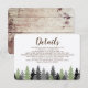 Esta tarjeta de detalles para una invitación a la boda presenta un diseño de pino de bosque siempre verde y un panel rústico de madera en la parte trasera. Personalice la información de su evento para crear una invitación de calidad que seguramente impresionará a sus invitados.