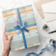 Envuelve tu regalo especial de primer aniversario en papel especial con mi arte de corazones de papel flotando en el agua bajo un cielo arcoiris pastel. El texto del personalizable dice "1 año".