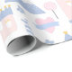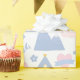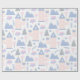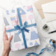 Este papel de envoltura de chicas pastel presenta un patrón con castillos rosados, copas, corazones y montañas azules sobre un fondo blanco. Es el papel de envoltura perfecto para un regalo de una ducha de bebé o el cumpleaños de un niño.