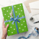 Papel envuelto con diminuto patrón de corazones blancos sobre fondo verde brillante. Asegúrese de ver el resto de los corazones pequeños y la colección de papel de colores audaces