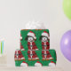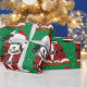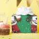 Festividades Navidades Holiday Bernedoodle Perro cachorro con garrapatas de doodle efecto traje de Santa y sombrero de Papá Noel sosteniendo una lata de caramelo en la boca. ¡navidades muy amables envolviendo papel para los amantes del bernedoodle! ¡Verde de vacaciones y fondo de nieve!
