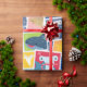 Envuelve tus pequeños regalos de los amantes del tiburón en este divertido y colorido papel de Navidades. Este diseño presenta un gran tiburón blanco, martillo, martillo de vieiras, tigre y ballena.