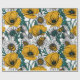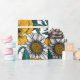 Patrón vectorial sin foco hecho con margaritas, amapolas y ladybugs dibujados a mano. Versión en color amarillo y blanco.