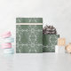 Papel envuelto de Navidades festivos que muestra un elegante patrón de árbol de Navidad en verde.