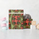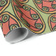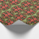 Un rollo de papel de envolvimiento de moda, con un tradicional patrón Escudo Tribal egipcio en rojo rusto, delineado en negro sobre un fondo verde. Este patrón, que forma parte de la colección "egipcia" de Posh y Painterly, se puede ajustar fácilmente para adaptarlo a cualquier Giftwrap.