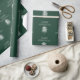 Un moderno patrón de árbol de Navidad pintado de blanco sobre papel verde festivo.
