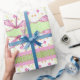 Este papel de envoltura de patrón caprichoso presenta un diseño de flor de bonito y libélula rosada. Utilice este papel para una ducha para bebés y otros regalos especiales para ocasiones.