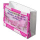 Descripción del diseño de la bolsa de regalo: Celebre el día del padre con esta bolsa de regalo de gran belleza y sentido. La bolsa presenta un vibrante esquema de color rosa y blanco con acentos geométricos redondeados y audaces a lo largo de los bordes, lo que le da un ambiente alegre y festivo. En el centro, un conmovedor mensaje dice: "¡Gracias por ser mi rock, mi guía y mi héroe!" —capturando perfectamente el sentimiento de gratitud y amor. Delicados ilustraciones florales a ambos lados del mensaje le dan un toque elegante y decorativo. Las palabras "Feliz Día del Padre" se colocan de forma elegante bajo la cita en una mezcla de letras lúdicas y clásicas. Terminada con mangos de cuerda blancos para fácil transporte, esta bolsa de regalo hace que el regalo del Día del Padre sea aún más especial.