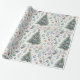 El papel de envoltura festivo muestra un árbol de Navidad bellamente ilustrado rodeado de adornos coloridos, aves encantadoras y una delicada flora, perfecto para regalar regalos de vacaciones.