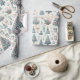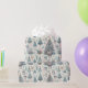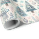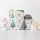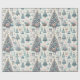 Delicados patrones de árboles de Navidad, adornos y elementos festivos crean un ambiente de ensueño, perfecto para envolver regalos durante las vacaciones. Se desarrolla una celebración de color y creatividad.