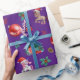 Este papel de envoltura de Navidades de Unicornio presenta un hermoso ilustracion acuático con un par de unicornios mágicos en sombreros de Santa, así como árboles de Navidad y otros elementos de la Fiesta. También puedes personalizarlo agregando el nombre de tu pequeña niña al periódico.