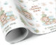 Cuidados Navidades envolviendo papel en azul, beige y verde suave, con el más lindo oso de peluche, árbol de Navidad y texto personalizado. Personaliza fácilmente el texto. - Kate Eden Art