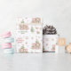 Navidades muy amputados envolviendo papel en rosa suave, beige y verde, con el oso de peluche más lindo, árbol de Navidad y texto personalizado. Personaliza fácilmente el texto. - Kate Eden Art