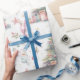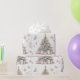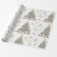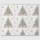 Un hermoso diseño de papel envolvente muestra un árbol de Navidad decorado, con adornos coloridos, regalos y delicados motivos de vacaciones, evocando un cálido espíritu festivo perfecto para la celebración.
