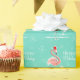 Diseño elegante con un toque retro con flamencos rosados festivos con sombreros de Santa María, estrellas y palmeras decoradas con azulejos en un fondo acuático. Un diseño de personalizable para que puedas personalizar con tu propio texto, imágenes e ideas. Imagen original de arte digital creada por Quirky Moda.