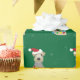Un terrateniente galés está cubierto de luces de Navidad, adornado con un sombrero de Santa, y tiene una rama de abeto saliendo de su boca en este Navidad verde envuelto en papel.