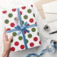 Un patrón rojo y verde, curado y clásico, de papel de envolver de puntos de polka